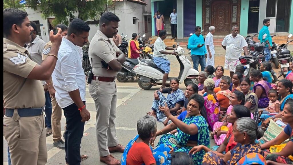 பின்னர் சம்பவ இடத்திற்கு காவல்துறை துணை கண்காணிப்பாளர் சபரிநாதன் தலைமையில் போலீசார் பேச்சுவார்த்தை நடத்தினர். இதுகுறித்து உரிய நடவடிக்கை எடுப்பதாக போலீசார் தெரிவித்ததை அடுத்து பெண்கள் கலைந்து சென்றனர்.