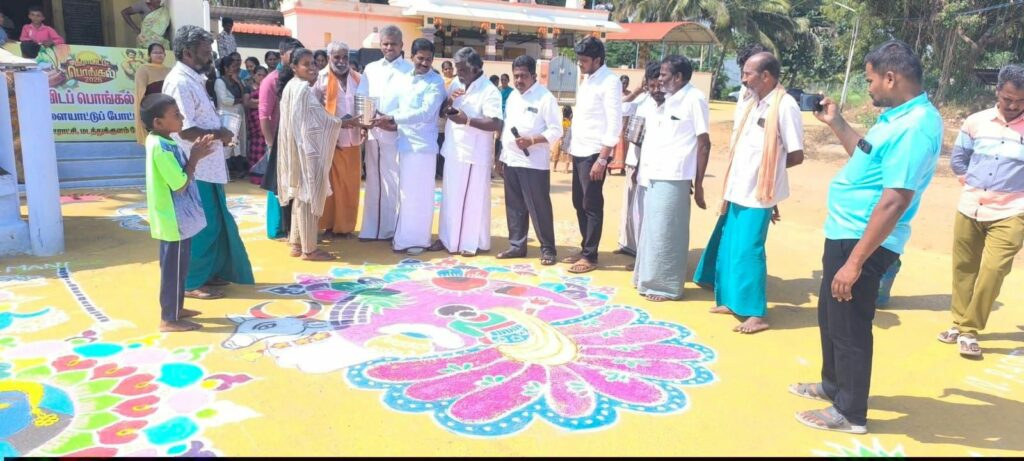 அதேபோல மடத்துக்குளம் அடுத்துள்ள துங்காவி, காரத்தொழுவு ஆகிய பகுதியில் விளையாட்டு போட்டிகள் நடைபெற்றது. பெண்களுக்கு கோல போட்டி , மியூசிக் சேர் என பலவிதமான போட்டிகள் நடத்தப்பட்டது. போட்டியில் நூற்றுக்கும் மேற்பட்ட பெண்கள் கலந்து கொண்டு வண்ண கோலங்களை போட்டு தங்களது திறமைகளை வெளிப்படுத்தினர்.