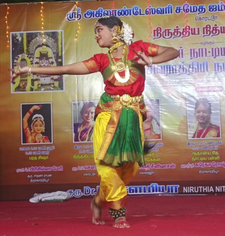 அதனைத்தொடர்ந்து UKG மாணவி  புகழினியின் நாட்டியம், கொரட்டூர்  நிருத்திய நித்யாலயா குழுவினர், சௌமியா, கொளத்தூர் ஶ்ரீ சரஸ்வதி சீனிவாசனின் மாணவி சரஸ்வதி கலா நிகேதன், திருவெற்றியூர் சுரேகா ரோஷனின் ஆதான்ய நாட்டியப் பள்ளி மாணவிகள், நொளம்பூர் ஸ்மிதா செந்தில் குரு ஶ்ரீ  அகாடமியின் நாட்டியாலயஷேத்ரா குழுவினர், அண்ணாநகர் மேற்கு தீபஞ்சனா சக்ரவர்த்தி ரிதம் டிவைன் மற்றும் வெல்னஸ் கிளப் குழுவினர், கொரட்டூர் புவனேஸ்வரி உள்ளிட்டோர் பரதநாட்டிய திறமைகளை வெளிப்படுத்தினர்.